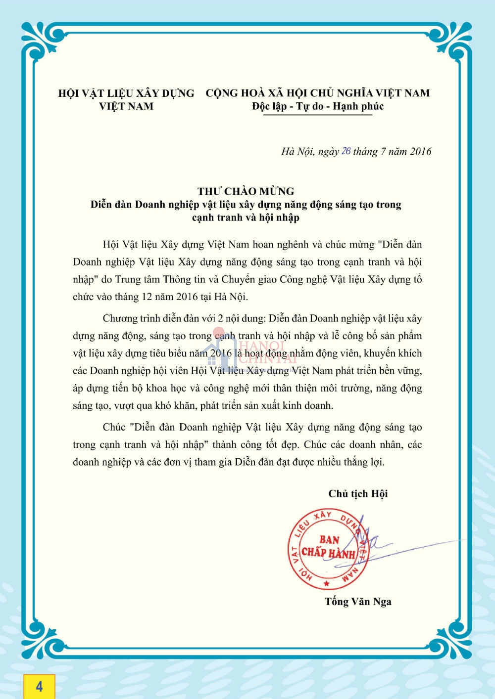 Dưới đây là các Thông tin chi tiết về Chương trình "Diễn đàn Doanh nghiệp VLXD năng động, sáng tạo trong cạnh tranh và hội nhập":