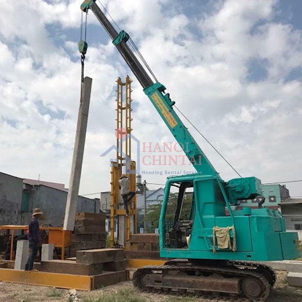 Bước 1: Sau khi đã ép thử cọc bê tông và được đảm bảo thì tiến hành ép cọc