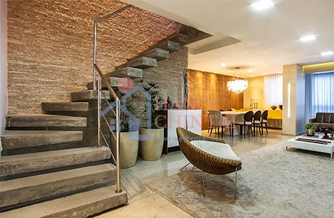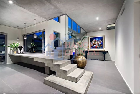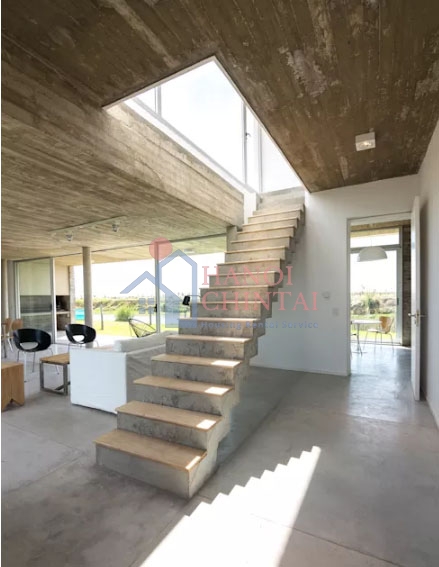 Bê tông vốn được coi là kiểu vật liệu phổ thông nhưng nặng nề, thiếu tinh tế. Để khắc phục điểm ấy, các kiến trúc sư đã tạo ra khoảng cách giữa các bậc thang bê tông thay vì xây liền chúng lại. Khi bạn bước đi, bạn có cảm tưởng như đang bước trên những phiến đá chữ nhật lơ lửng chứ không phải đang đi trên chiếc cầu thang nhà mình.