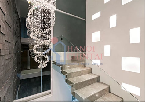 14. Mơ màng với đèn trắng, kính thủy tinh và chiếc cầu thang thời thượng