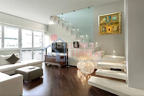 Lạc bước vào căn phòng này tựa như đang dạo chơi trong một bộ phim giả tưởng, bí ẩn đầy thú vị. Chiếc cầu thang sử dụng gỗ nâu trầm, nội thất lấy màu đen chủ đạo và trần nhà phản chiếu ánh đèn vàng hắt từ bên dưới khiến căn phòng này không bao giờ trở nên nhàm chán. Chiếc cầu thang tựa như một lối đi riêng dẫn bạn đến khám phá những tầng trên, trên nữa…