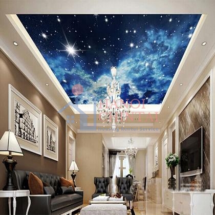 Không chỉ làm sàn nhà 3D, mà giấy dán tường 3D còn được dùng để trang trí cho tường nhà, trần nhà. Giấy dán tường galaxy 3D ảo diệu cho trần nhà không chỉ giúp trần nhà của bạn trở nên đẹp mắt hơn vào ban ngày. Điều tuyệt vời nhất chính là ban đêm, bạn sẽ có cảm giác như bạn đang ở trên một hành tinh khác, hay giống như đang dùng kính viễn vọng ngắm các dải ngân hà, các chòm sao và các vì tinh tú trên bầu trời.