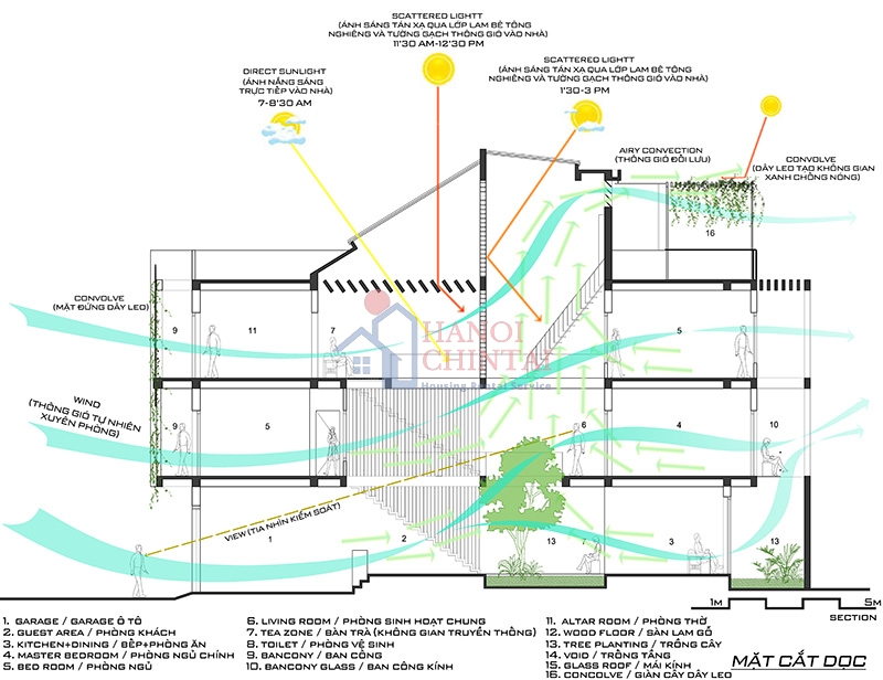 Mô hình tổ chức thống gió và thoát nhiệt tối ưu cho nhà phố.