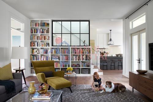 Gam màu xám và vàng kem nên được lựa chọn là màu chủ đạo để tạo thiết kế hài hòa, có nhịp chuyển đều đặn để tránh sự gượng gạo trong thiết kế màu sắc của phòng khách. Không gian của bếp và khu vực bàn ăn nên nằm liền kề với phòng khách, ngăn cách bởi bình phong làm nền trang trí. Trong thiết kế này, thông thường cầu thang nằm cận kề đó nên đã xén đi mất một khoảng đất nhỏ, khiến thiết kế bếp trở nên lồi lõm không còn vuông vức, trọn vẹn. Vì vậy, chủ nhà nên đổi hướng đặt cầu thang, vừa không làm mất mỹ quan của phòng khách lại giữ trọn được hướng nhìn đẹp phía mặt tiền đi vào nhà.