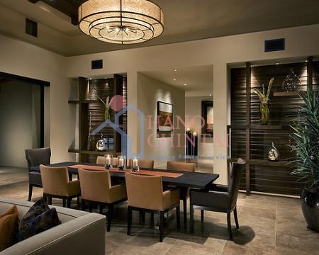 Bộ bàn ghế ăn nên chọn gỗ nâu và gam trắng của đệm để màu sắc hài hòa, dễ chịu. Vài bức tranh tĩnh vật hoặc những món đồ yêu thích do chính tay các thành viên gia đình nên được chọn để trang trí trong khu vực này. Những vật nội thất tĩnh lặng tưởng chừng khô khan ấy sẽ làm tăng thêm sức sống cho không gian sinh hoạt chung của gia đình. Yếu tố thiên nhiên như một vài bình hoa, hay chậu cây cảnh nhỏ cũng nên được đưa vào để làm nên sự thi vị cho bữa cơm ấm cúng.