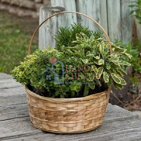 ... hoặc bạn cũng có thể sử dụng giỏ mây kiểu dáng, kích cỡ khác nhau để trồng cách loại rau thơm, xà lách,... theo một trường phái ngẫu hứng như thế này!