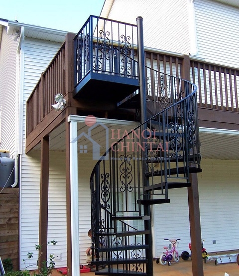 Sắt là chất liệu phổ biến nhất trên thế giới, được sử dụng để tạo ra nhiều sản phẩm khác nhau trong đó có cầu thang. Nhờ bàn tay tài ba, người ta biến thanh sắt thô sơ thành hoa văn khác nhau từ cổ điển đến hiện đại, mang tới vẻ lịch lãm và đầy cuốn hút cho chiếc cầu thang. Chiếc cầu thang sắt này được phủ sơn bên ngoài để chống bám bụi và chống oxi hoá nên sẽ chịu được những biến động khắc nghiệt của thời tiết.