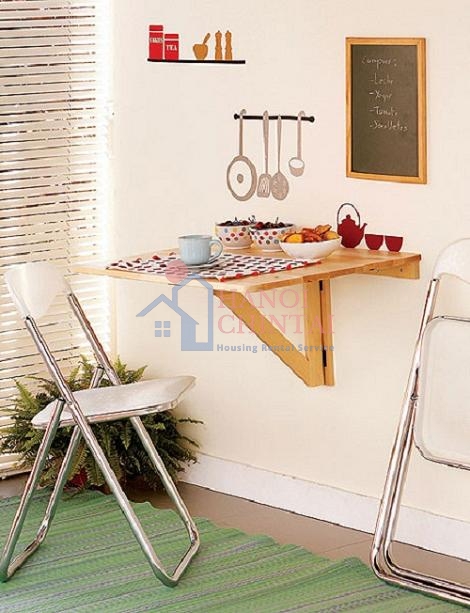 Đối với những người độc thân hay gia đình của vợ chồng trẻ, những chiếc bàn một chân gắn tường là giải pháp tuyệt vời hơn cả. Gắn chiếc bàn lên tường, nơi để bạn thêm chức năng sinh hoạt. Khi cần sử dụng, chỉ cần chống chân bàn lên, thêm một hoặc hai chiếc ghế, thật đơn giản và hữu ích với ý tưởng vô cùng tuyệt vời này.