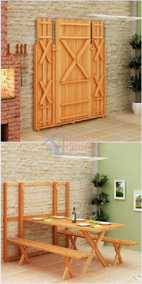 Bên cạnh bàn, loại ghế hoặc bộ bàn ghế gắn tường, cũng là lựa chọn thú vị cho nhà chật. Chỉ cần kéo bàn ghế theo chiều ngang, là bạn và gia đình đã có không gian ăn uống rộng rãi, sum vầy. Sau khi sử dụng, dựng chúng sát tường theo khuôn có sẵn. Nhìn những mẫu bàn ghế đáng yêu, hữu dụng này, chắc chắn bạn sẽ không ngần ngại sắm cho gia đình.