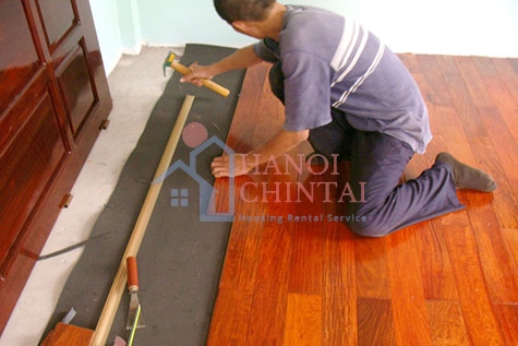 - Bước 3: lắp đặt sàn gỗ