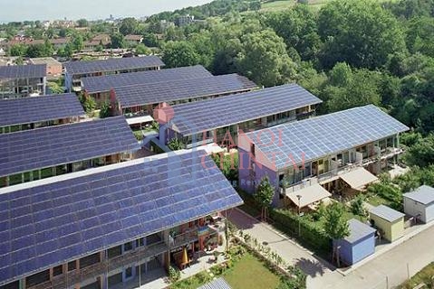 Các tấm pin năng lượng mặt trời được lắp đặt trên mái và ốp tường bao ngoài nhà không chỉ hấp thụ năng lượng mặt trời mà còn tạo tính thẩm mỹ cho toàn bộ công trình, giúp chuyển năng lượng mặt trời thành dòng điện một chiều. Sau đó, dòng điện này được chuyển đổi thành nguồn điện xoay chiều thông qua bộ chuyển đổi điện nối lưới (Grid Tie Inverter), đảm bảo nguồn năng lượng được tạo ra từ hệ pin mặt trời ở chế độ tốt nhất và cung cấp cho các thiết bị điện trong gia đình. Nó giúp các gia đình thêm chủ động về nguồn điện, góp phần tăng cường công tác triển khai các dạng năng lượng sạch, tái tạo. Tuy nhiên, chi phí lắp đặt pin năng lượng mặt trời cỡ lớn vẫn còn khá cao, chưa thật sự phù hợp với các gia đình Việt Nam.