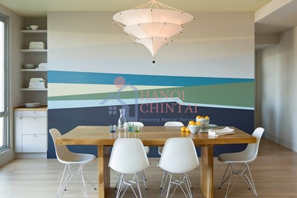 Một ý tưởng khác đó là thiết kế một bức tranh trừu tượng trên tường. Hãy quên đi những quy tắc và những thiết kế mang tính biểu tượng để giải phóng sự sáng tạo của bạn. Bạn có thể kết hợp màu sắc và những đường nét hình khối với nhau.