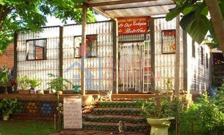 Hàng ngàn những chai nhựa PET được tận dụng để làm thành tường của ngôi nhà, tạo bởi gia đình Alfredo Santa Cruz, ở Puerto Iguazu, Argentina. Theo họ, Casa de Botellas là “một công cụ để thúc đẩy hệ sinh thái và trách nhiệm xã hội”.