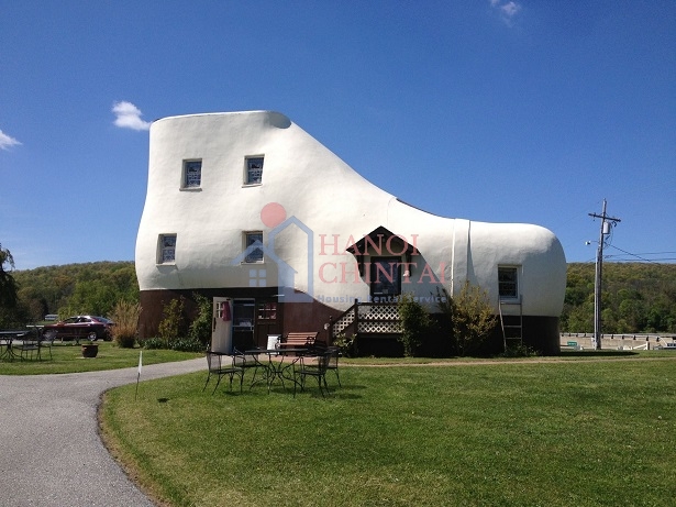 Nằm trên đường Shoe House ở Hallam Pennsylvania, Ngôi nhà Giày độc đáo một cách kỳ lạ - và trái ngược với cách nói của trẻ con, nó không thuộc về một bà già. Nó được xây dựng bởi người bán giày Mahlon Haines, người đã sử dụng nó làm hình ảnh quảng cáo cho giày bảo hộ lao động của công ty.