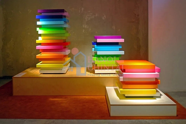 Ghế chồng từ các tấm bê tông màu sắc được thiết kế bởi Emmanuelle Moureaux.