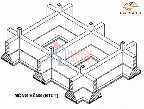 Móng băng phổ biến trong xây dựng công trình dân dụng