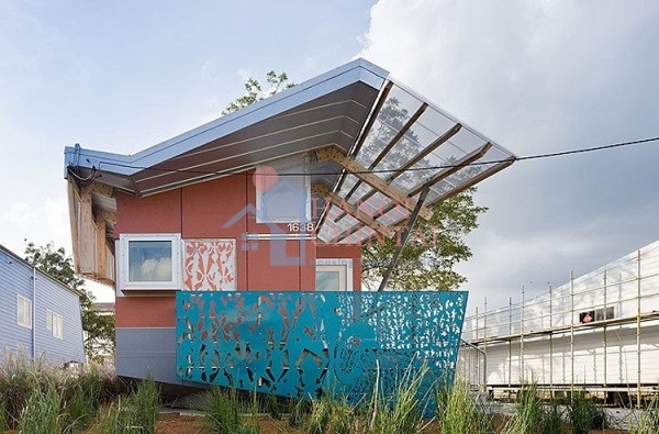 Công trình tiết kiệm năng lượng rộng gần 90 m2 là giải pháp cho những vùng thường xuyên xảy ra lũ lụt trên thế giới. Ngôi nhà được xây từ một hệ khung đúc sẵn bằng bọt polystyrene cùng với lớp bao che là kính cường lực và bê tông sợi được gia cố khiến cho nó đủ nhẹ và trở thành một chiếc bè nổi khi nước lũ dâng lên.