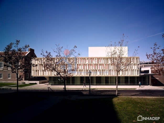 Các viên gạch rỗng được sản xuất bởi Boston Valley Terra Cotta, các nhà thiết kế không yêu cầu tráng men và chỉ sử dụng bột màu trắng trộn với đất sét trước khi nung để tạo màu cho sản phẩm. Sự thô mộc của những viên gạch và sự sắp xếp lộn xộn của chúng giống như hình ảnh những chiếc kệ chứa đựng các dự án mà sinh viên đang thực hiện bên trong. Các ống này cũng có chức năng như một tấm chắn sáng, bảo vệ các phòng trưng bày hướng về phía nam khỏi ánh sáng trực tiếp của mặt trời. Cách che chắn này đã giúp dự án đạt được chứng nhận LEED Silver ngay khi hoàn thành.