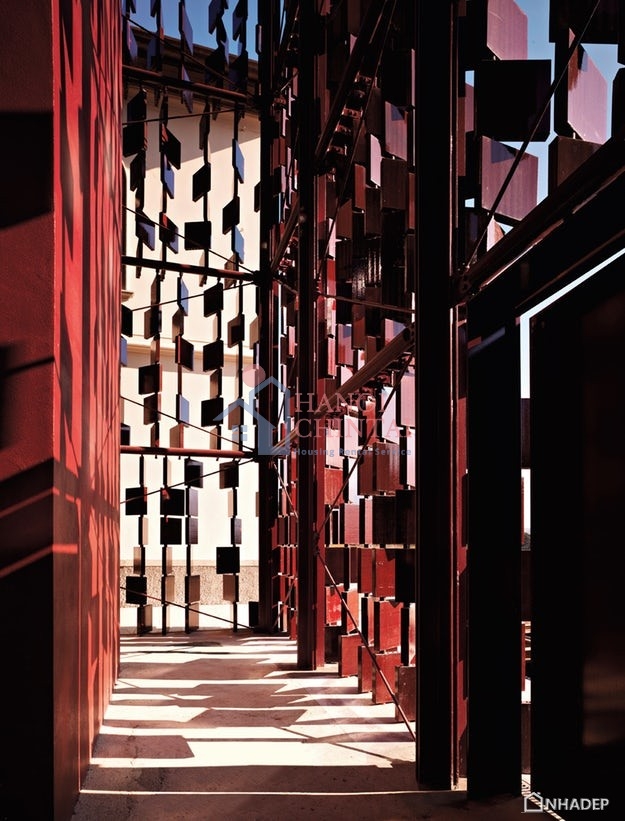 Hệ thống “màn che” bằng gốm terracotta này ngoài tác dụng trang trí còn là một tấm màn che nắng cho cả tòa nhà.