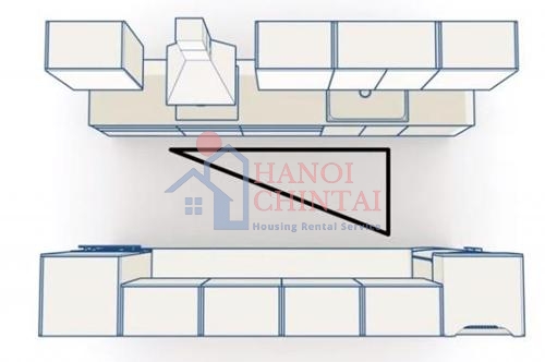Trong bếp có 3 điểm quan trọng nhất là tủ lạnh, bồn rửa và bếp nấu nên bố trí theo hình tam giác để hạn chế việc đi lại. Ở khu vực chế biến thực phẩm, nếu thuận tay phải, bạn hãy bố trí bồn rửa, bàn chế biến và bếp nấu từ trái sang phải. Nếu thuận tay trái, bạn nên xếp ngược lại.