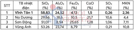 Nhận xét: TB thu được từ Nhà máy Nhiệt điện Vĩnh Tân 1 có thành phần hóa học tương tự TB Vũng Áng, nổi bật với tổng hàm lượng SiO2 + Al2O3 + Fe2O3 đạt 87,48%, cao hơn nhiều so với các nguồn khác. Các chỉ tiêu SO3 (0,26%), CaO (1,5%) và MKN (2,36%) đều ở mức thấp, góp phần hạn chế nguy cơ ăn mòn và cải thiện cường độ của bê tông.
