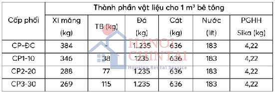 Bảng 3. Kết quả tính toán thành phần cấp phối của BTXM