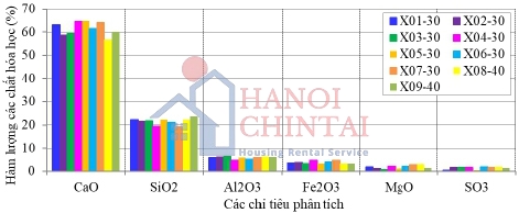 Hình 9. Hàm lượng các chất hóa học chính trong các mẫu xi măng.