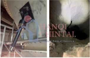 Từ cửa thăm trên đỉnh silo, đã xác định được rằng bề mặt lớp xỉ xi măng cách mái silo khoảng 5m, do vậy tổng chiều sâu sản phẩm dầy khoảng 23m và lượng sản phẩm chứa là hơn 2000t.