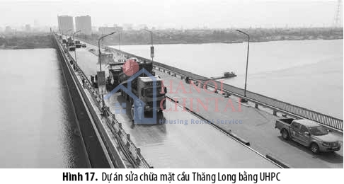 Tại Việt Nam, ứng dụng công nghệ bê tông siêu tính năng UHPC chủ yếu cho xây dựng công trình cầu dân sinh. Từ năm 2016 đến nay đã có khoảng 50 cầu UHPC được xây dựng ở 17 tỉnh trên cả nước. Hình 16 minh họa cầu dân sinh Năng An - Xuân Hồi được xây dựng tại Ninh Bình [27]. Cầu dân sinh UHPC với các dầm chịu lực có nhịp từ 12 - 25 m, chủ yếu là các cầu dầm nhịp nhỏ. Nếu được phát triển thành các nhịp lớn 36m hoặc 50m, thì tổng giá thành xây dựng cầu sẽ giảm chỉ còn 65 - 75% so với cầu sử dụng bê tông thường [28]. Rõ ràng, việc ứng dụng UHPC đem lại hiệu quả lớn về mặt kinh tế. Dự án lớn đầu tiên ở Việt Nam sử dụng vật liệu UHPC là dự án sửa chữa mặt cầu Thăng Long năm 2020 , như minh họa trên Hình 17 [29]. So với tiềm năng của loại bê tông này, ứng dụng vào thực tế xây dựng ở nước ta vẫn còn rất khiêm tốn. Những hạn chế liên quan đến việc ứng dụng loại vật liệu này vào lĩnh vực xây dựng ở Việt Nam có thể kể đến: công nghệ về sản xuất UHPC hiện vẫn còn khá mới [30], chỉ có số ít đơn vị có thể sản xuất và cung ứng loại vật liệu này, dẫn đến giá thành sản xuất cao. Ngoài ra, việc thiếu các tiêu chuẩn dành riêng cho loại bê tông này cũng ảnh hưởng đến việc thiết kế, thử nghiệm và thi công kết cấu UHPC.