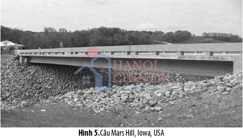 Tại Mỹ, dầm nhịp lớn đầu tiên sử dụng UHPC là cho kết cấu cầu Mars Hill ở Quận Wapello, Iowa (Hình 5) [12]. Cầu có nhịp dài 33 m với các dầm chữ I dự ứng lực cao 1,07 m. Mỗi dầm chứa 47 sợi cáp ứng lực có đường kính 15,2 mm mỗi sợi.