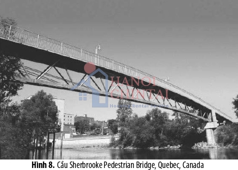 Cây cầu với dầm nhịp lớn đầu tiên sử dụng UHPC ở Canada là cầu dành cho người đi bộ ở Sherbrooke, Quebec [15], như thể hiện trong Hình 8. Đây là một dạng kết cấu cầu liên hợp UHPC và thép được xây dựng từ sáu đoạn ghép nối đúc sẵn với nhịp lớn nhất lên đến 60m.