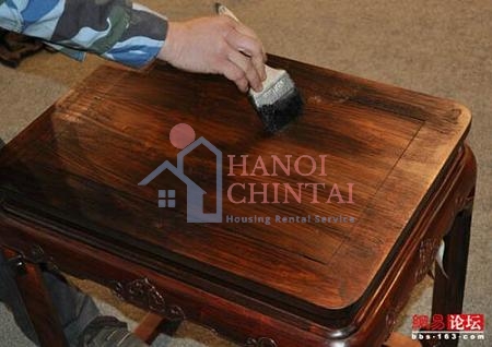 4. Nếu như trên bề mặt đồ gỗ có những vết nứt, có thể dùng cồn i-ốt pha loãng chà hoặc đổ lên bề mặt sơn thông thường. Cách vài ngày lấy vải chà sát thật mạnh là có thể khôi phục được nguyên trạng.