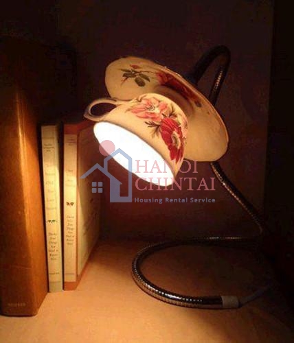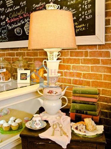 Một chiếc đèn bàn đầy sáng tạo từ ấm chén cũ.