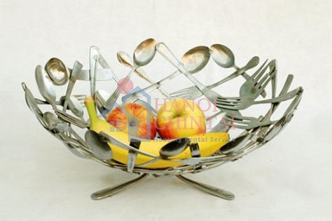 Nếu bạn đang thiếu một khay đựng hoa quả, thay vì mua mới, hãy sử dụng những chiếc thìa, dĩa và dao cũ để làm nên một khay mới độc đáo mà chỉ riêng nhà bạn mới có.