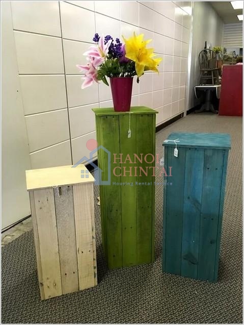 Kệ trưng bình hoa không cần quá to, việc của bạn là ghép chọn miếng pallet phù hợp, đóng chúng thành hình chữ nhật thế này rồi tô màu cho chúng. Cuối cùng chỉ cần để chúng vào nhà, đặt một lọ hoa lên đó, thế là không gian nhà đã sáng bừng rồi!