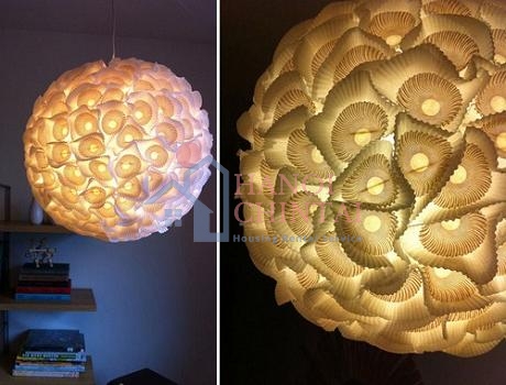 Tái sử dụng những chiếc ly giấy nhỏ dùng đựng bánh ngọt, sau khi khéo léo sắp xếp chúng lại với nhau, người làm được một bộ đèn chùm ngon, bổ, rẻ. Chú ý khi sử dụng loại đèn này phải chọn bóng đèn cho ánh sáng lạnh. Tránh sự phát nhiệt từ đèn có thể làm cháy giấy.
