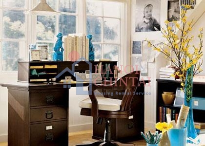 - Bàn hướng ra cửa: Khi chọn phòng làm việc, bạn cần xem xét kỹ để phương và vị hợp với tuổi của mình. Bàn làm việc phải luôn hướng ra cửa nhưng không đối diện cửa ra vào. Đây là cách giúp bạn luôn tỉnh táo, thông minh và làm việc hiệu quả. Tuy nhiên, cách bài trí này chỉ phù hợp khi bạn được làm một người một phòng và phía sau bàn không có cửa sổ.