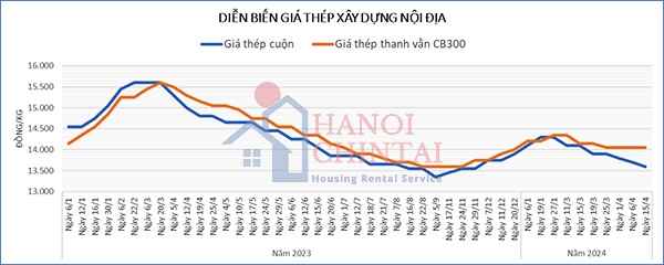 Giá thép thanh vằn nội địa vẫn ổn định trong tháng 4/2024. Sau đợt giảm giá thép thanh vằn 100.000 đồng/tấn vào tuần cuối tháng 3/2024, các nhà máy chưa có thêm động thái điều chỉnh giá niêm yết mặt hàng này. Với 2 lần điều chỉnh giảm giá thép thanh vằn trong tháng 3/2024, tổng mức giảm giá của mặt hàng tính tới nay là 300.000 đồng/tấn.