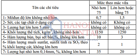 Cốt liệu cát là bộ xương chịu lực cho vữa đồng thời cát còncó tác dụng chống co ngót cho vữa và làm tăng sản lượng vữa. Để chế tạo vữa cóthể sử dụng cát thiên nhiên hoặc cát nhân tạo nghiền từ các loại đá đặc hoặc đárỗng. Chất lượng cát có ảnh hưởng nhiều đến cường độ của vữa. Cát phải đảm bảocác yêu cầu chủ yếu theo bảng sau: