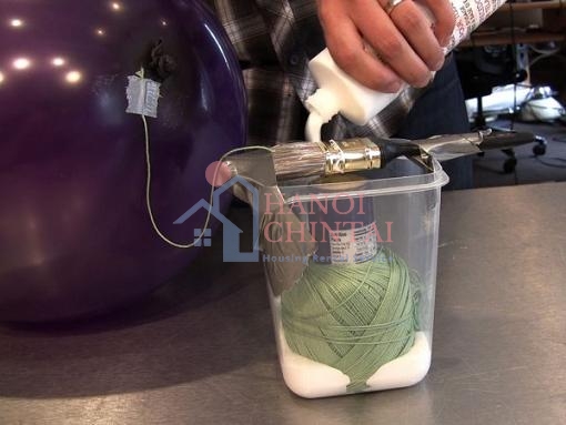 Bước 3: Sau khi các sợi len hoàn toàn khô, đâm thủng quả bóng bay và lấy vỏ bóng ra ngoài.