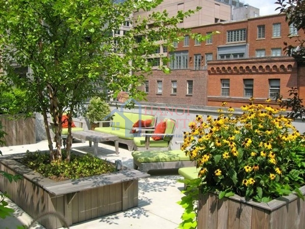 Nếu sân thượng có diện tích rộng rãi, bạn nên sử dụng ý tưởng tạo bồn hoa xinh xắn. Những bồn được xây cố định tạo đường viền thiên nhiên cỏ cây đẹp xinh. Những thành của bồn hoa có thể xây rộng rãi tạo nên những nơi ngồi nghỉ, đọc sách, hay chuyện trò thêm thú vị.