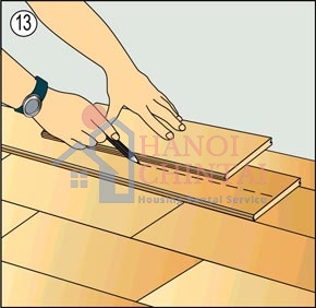 Cắt lỗ trên tấm sàn xung quanh những trở ngại như trụ cột, ống và bài. Hãy nhớ lại những khoảng trống mở rộng đủ xung quanh tất cả những trở ngại này. Đôi khi, khung cửa, căn cứ đá và các căn cứ truy cập cần thiết để được cắt xén để ẩn cạnh của bảng điều khiển. Luôn luôn cho phép mở rộng khoảng cách thích hợp phía sau cắt xén. Khi bạn phải đối mặt với những khó khăn ở những nơi có tấm nâng lên xuống là không thể kết nối tấm mới vào bảng đặt trước đó (ví dụ như bên dưới một khung cửa), sử dụng một cái đục để giảm phần cao của rãnh. Hãy cẩn thận không để cắt quá nhiều hoặc người nào khác nó sẽ làm suy yếu doanh. Ứng dụng đủ keo vào groove đổi, cho đến khi bạn thấy vắt ra giữa doanh khi bạn trượt các tấm với nhau. Lau sạch các cặn keo với một miếng vải ẩm và sử dụng băng dính mạnh mẽ để giữ chặt chung cho tối thiểu 12 giờ.