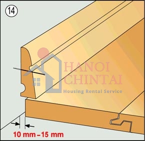 Trước khi bắt đầu cài đặt các bảng điều khiển, để tránh những tấm cuối thu hẹp hơn so với 2 "(50mm), đo chiều rộng và phân chia phòng với chiều rộng bảng điều khiển. Nếu cần thiết, thấy giảm dòng đầu tiên để có dòng cuối cùng nhiều hơn 2 "rộng. Bây giờ bắt đầu hình thành ở góc trái của căn phòng và đặt bảng điều khiển đầu tiên với lưỡi (phải được cắt bỏ) hướng về phía các bức tường. Đảm bảo ít nhất 3 / 8 "đến 5 / 8" (10 ~ 15 mm) Khoảng cách mở rộng xung quanh chu vi của căn phòng cũng như chống lại bất kỳ đối tượng cố định. Sử dụng miếng đệm hoặc nêm để bảo vệ hàng đầu tiên.