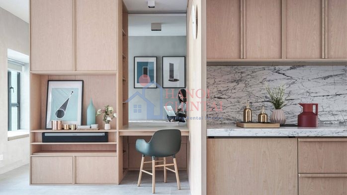 Góc bàn làm việc thiết kế đơn giản nhưng vô cùng tinh tế hòa hợp với căn hộ.