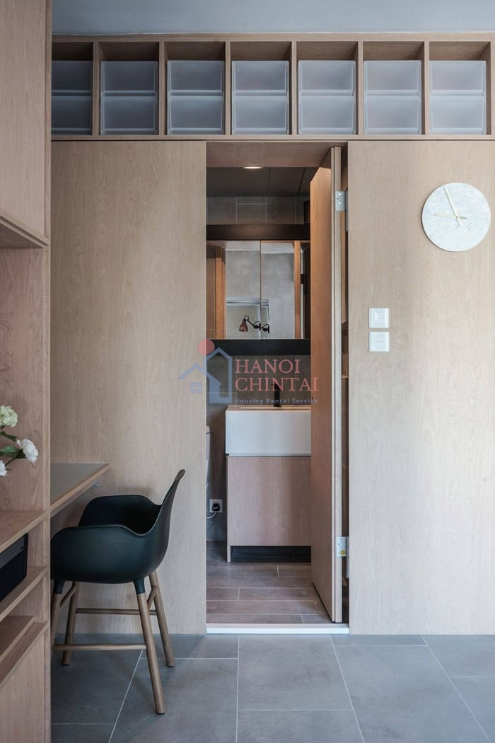 Căn hộ 33m2 này có không gian sống vô cùng ấn tượng với vẻ đẹp nhẹ nhàng, gần gũi của gỗ và xi măng. Sự kết hợp của hệ thống nội thất liền tường và màu sắc tinh tế, tươi tắn giúp không gian dường như rộng hơn gấp bội. Đây đúng là một tổ ấm dù nhỏ nhưng hạnh phúc và ấm cúng.