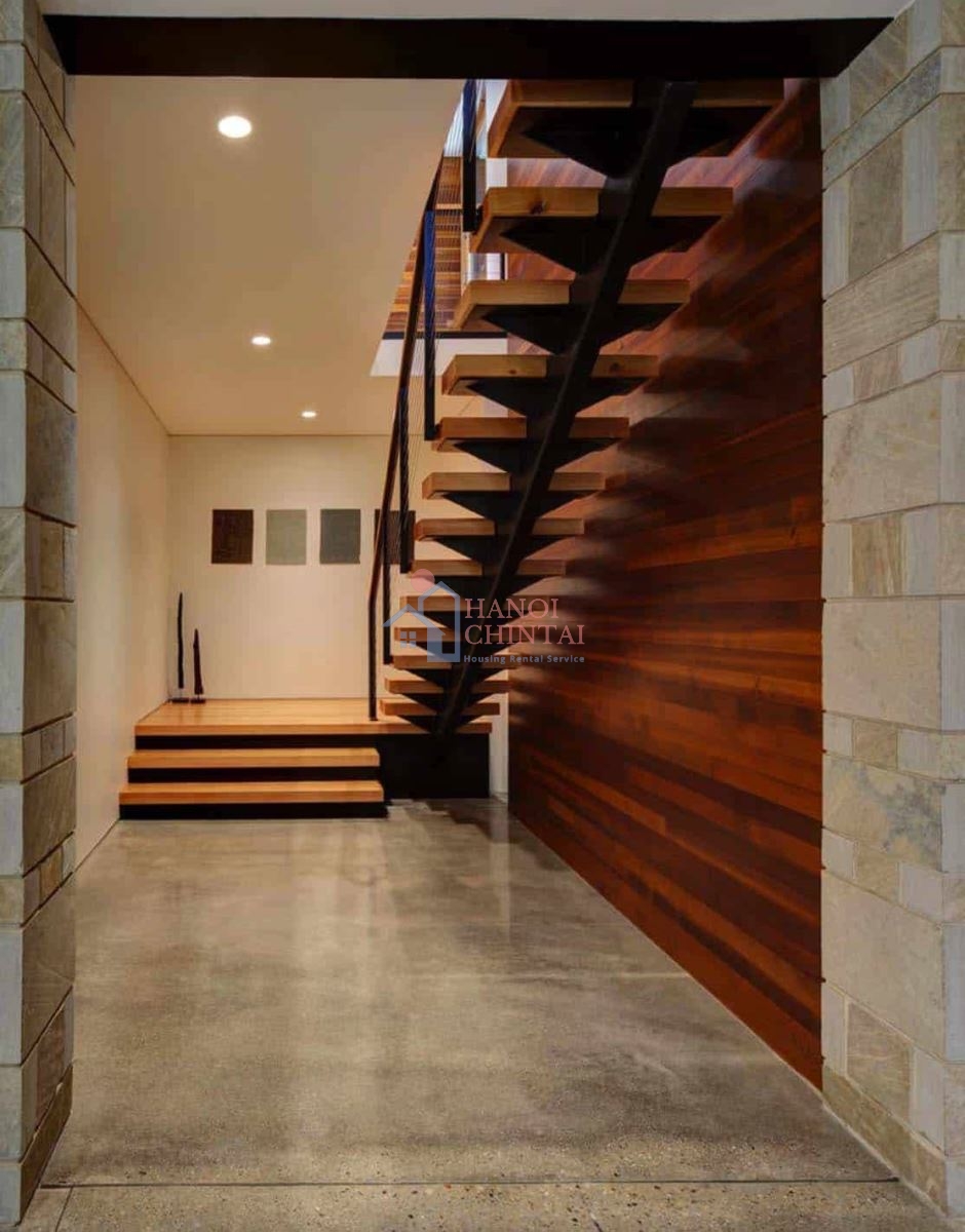 Việc vệ sinh, lau chùi cầu thang cũng đơn giản hơn so với cầu thang truyền thống. Bậc cầu thang để mở giúp không gian thêm thông thoáng. Cầu thang có độ bền cao.