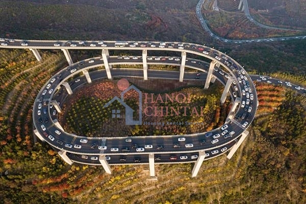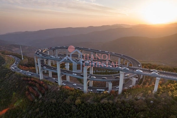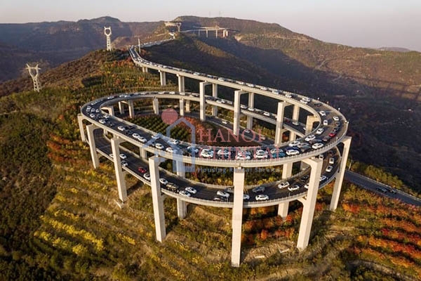 Đường cao tốc này có chiều dài khoảng 30km và để giải quyết sự chênh lệch cao độ lớn giữa đầu và đuôi của con đường, phương pháp thiết kế chung là tăng dần cao độ mặt đường thông qua các đoạn đường cong. Đội ngũ thiết kế đã chọn phương án xây cầu để tăng cao độ của đường cao tốc. Tổng cộng có 4 cầu cạn trên toàn bộ đoạn đường cao tốc, trong đó cây cầu xoay ba tầng gần đỉnh núi là cầu cao nhất trong dự án.
