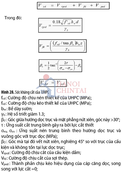 Đối với UHPFRC không dự ứng lực, cho phép nứt ở TTGH sử dụng, chiều rộng vết nứt cho phép 0.3 mm (bình thường); 0.1 mm (khắc nhiệt); 0.05 mm (rất khắc nhiệt);
