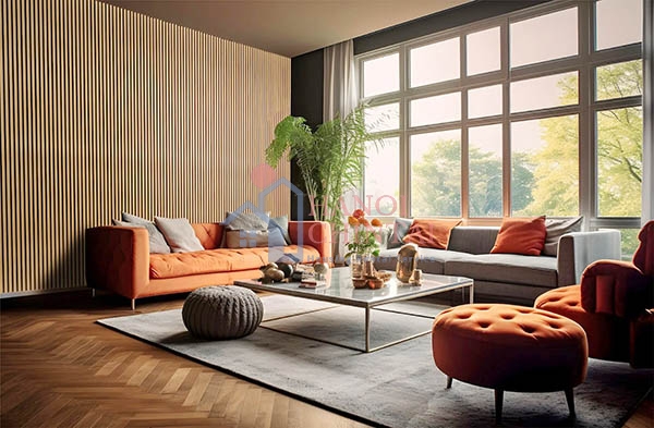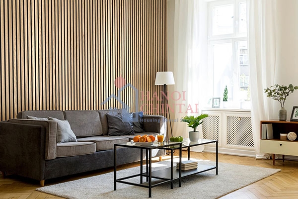 Mẫu vách gỗ tiêu âm tạo điểm nhấn sang trọng.