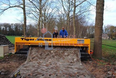 Tiger Stone là sản phẩm độc đáo của một công ty ở Hà Lan. Điểm tuyệt vời của chiếc máy này đó là trực tiếp ép các viên gạch thành 1 khối theo hình dạng có sẵn để ép thẳng xuống đường – công việc mà sẽ mất rất nhiều thời gian và công sức nếu làm bằng sức người.